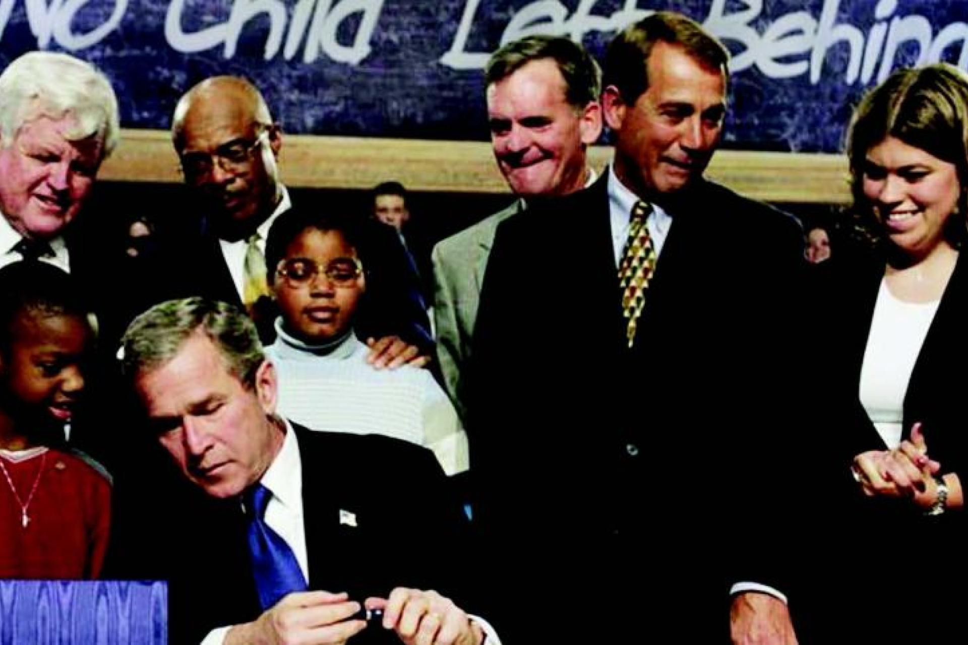 The law enjoyed early bipartisan support. “I think what’s important today is that we have a president that wants to make this a strong priority in education,” Senator Edward Kennedy (D-MA) said during the White House signing ceremony. “And I think we have those that have leadership positions in the House and Senate that want to work with him and get something meaningful done.”