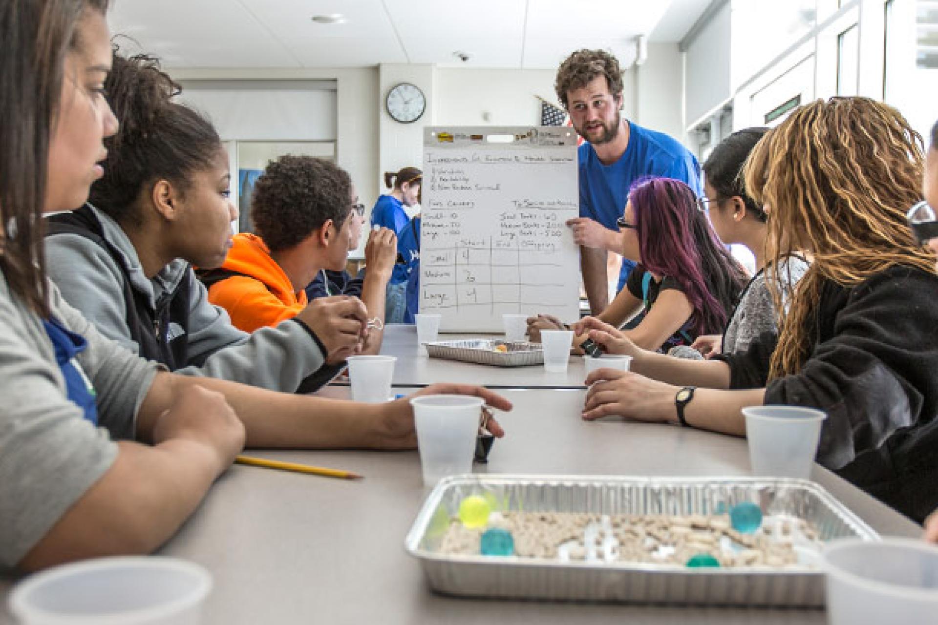 On an island in the middle of the cafeteria at Broughal Middle School, Darwin’s finches are being given a rare second chance in the daily scramble for survival. When Mike McQuillan gives the word, eight students, each clutching a small, medium or large binder clip, take aim at two trays situated at each end of a long table.